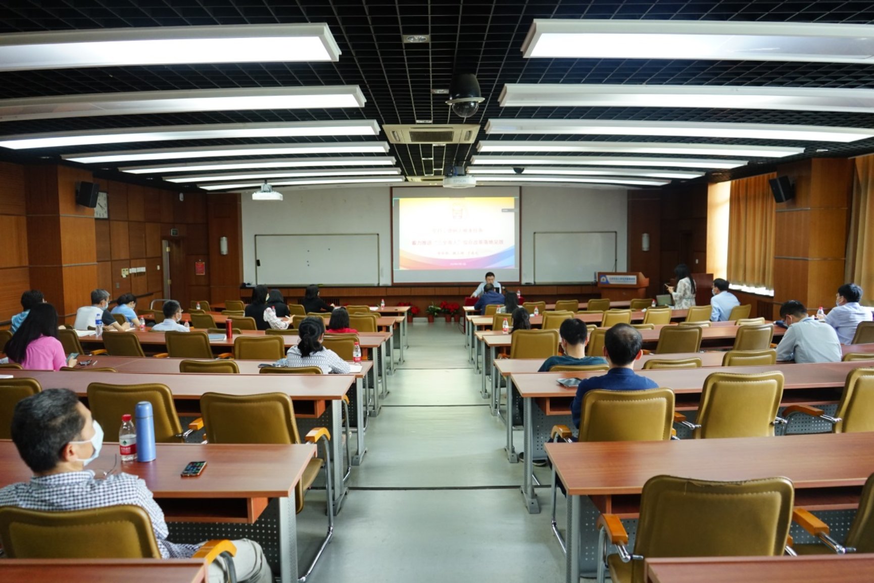 于成文从“三全育人”内涵与工作思路、学校全面推进“三全育人”综合改革成效、学院“三全育人”工作职责等三方面,对学校在“三全育人”工作中落实立德树人根本任务,构建“一个中心、三关键任务、四个攻坚行动、五类育人计划”工作体系,建立系统化设计、清单化分解、项目化推进的综合改革工作机制以及目前工作已取得的具体成效等进行了系统、全面、深入的介绍与讲解同时,他还指出学院“三全育人”工作在目前已取得工作成效的基础上,落实好本科生全程导师制工作,有效引导全体教师育人积极性,积极选树优秀育人导师典型;要继续推进思政进课堂工作,打造特色思政课堂,将思想政治教育工作融入贯穿教育教学全过程;要不断深入挖掘和总结凝练学院“三全育人”工作特色理念和成果亮点为学校“三全育人”工作提供助力。
