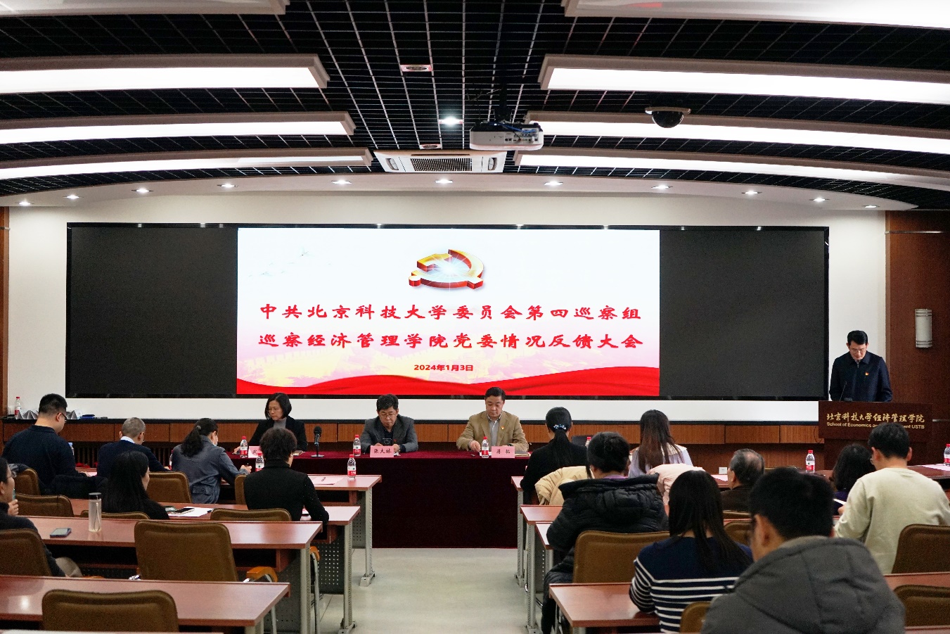 巡察反馈大会前,巡察办、巡察组在经管楼809会议室向学院主要负责人、学院班子进行了巡察情况反馈,反馈会由巡察工作办公室主任张俊燕主持。