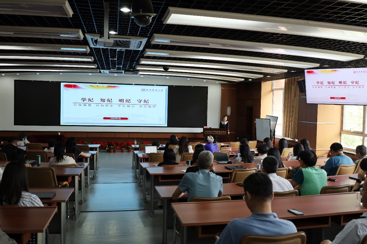 为深入推动党纪学习教育走深走实,5月16日,bat365官方网站召开全院教职工理论学习暨全院大会,邀请纪委办公室、监督检查室副处级纪检员邓春秋作深入解读《中国共产党纪律处分条例》(以下简称《条例》)的专题辅导报告。学院全体教职工参加学习,会议由学院党委书记武森主持。