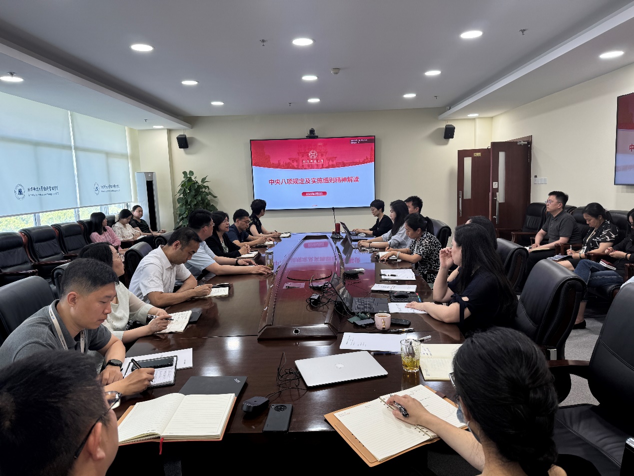 学院纪委书记、党委副书记、副院长倪宇做专题领学,围绕中央八项规定及其实施细则精神进行深入解读,详细传达《中共bat365官方网站委员会贯彻落实中央八项规定精神及实施细则的实施办法》文件精神,并重点强调了《中国共产党纪律处分条例》中关于违反中央八项规定精神问题的相关规定。