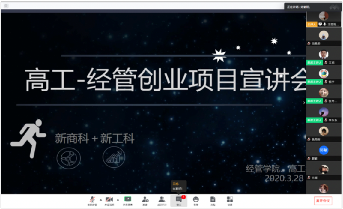 In order to cultivate students’ awareness of innovation and entrepreneurship, strengthen their ability to enhance innovation and entrepreneurship, and break the communication barrier between engineering and business students, SEM planned to organize a series of online innovation and entrepreneurship projects presentation, cooperation, and exchange activities during the pandemic. On the afternoon of March 3, information session of“New Business + New Engineering” entrepreneurial projects for engineering students and SEM students was successfully held. Ni Yu, Deputy Secretary of Party Committee of Donlinks School of Economics and Management, Wang Xu, Director of Robotics Engineering Practice Base of School of Advanced Engineering, and relevant teachers and students participated in the session. Two teams, “TikTok operation program in ROBOTAC” and “mobile game development based on ROBOTAC” from the School of Advanced Engineering presented their projects.