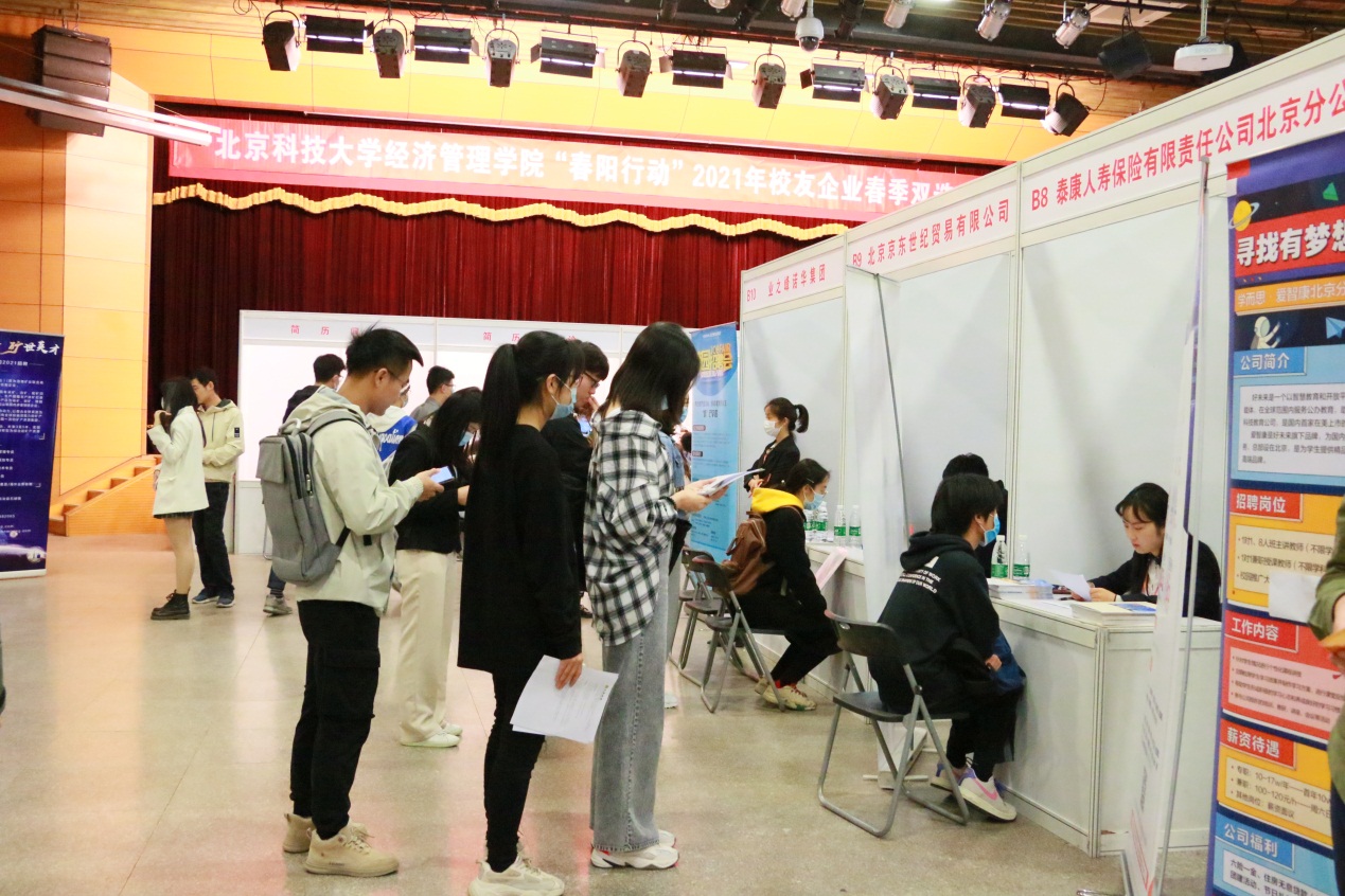为做好2021届毕业生校园招聘工作,同时为在校生提供实习机会,bat365官方网站于4月16日在教职工礼堂举办“春阳行动”2021年校友企业春季双选会。本次双选会吸引了39家企业参会,招聘岗位面向学校多个专业学生。参会同学早早到场排队,现场氛围异常火爆。