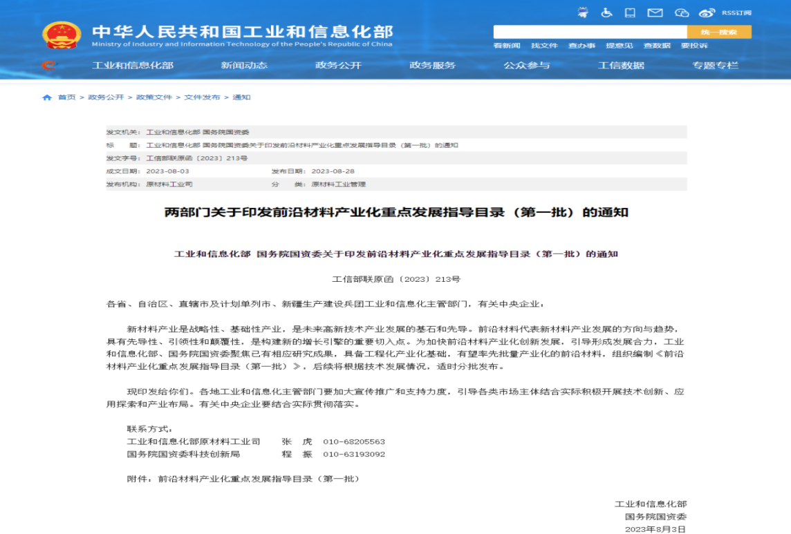 8月28日,工业和信息化部及国务院国资委联合发布关于《前沿材料产业化重点发展指导目录(第一批)》的通知,高熵合金作为第一批重点材料入选目录。