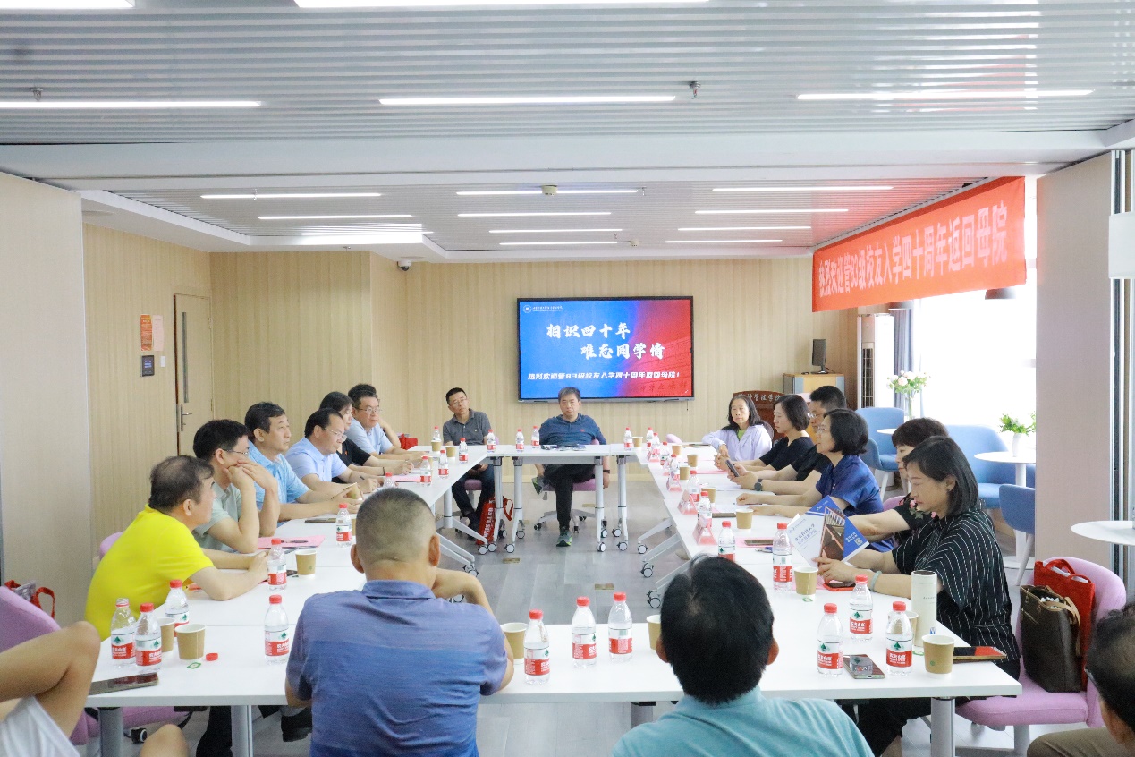 座谈会上,谷炜院长代表学院热烈欢迎校友们在入学40周年之际重返母校,并向校友们详细介绍了学院发展概况、学科建设、科研建设、师资引育、人才培养等方面取得的突出成效,充分肯定了校友们为母校发展做出的贡献,对校友们长期以来关心、关注、支持母院发展表示衷心的感谢,希望广大校友继续关心支持学院的发展和建设,为推动学院高质量发展积极建言献策。