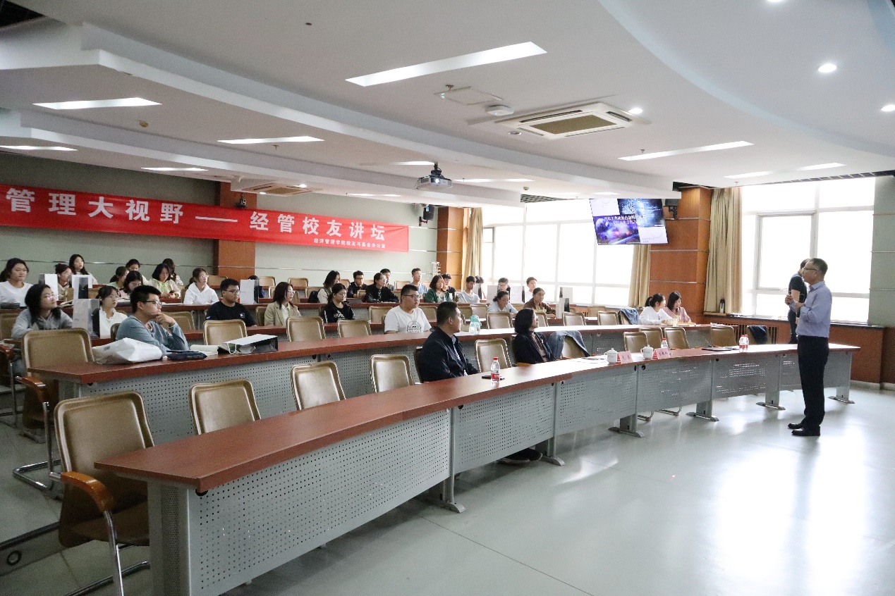 2023年10月18日下午,“管理大视野——经管校友讲坛”第三十七讲在经管楼312教室成功举办。本次活动邀请到学院管信87级校友、北京四维图新科技股份有限公司高级副总裁宋铁辉为师生们分享“汽车工业映射出的科技发展——定位人生方向为之奋斗”。讲座由学院党委书记武森主持。
