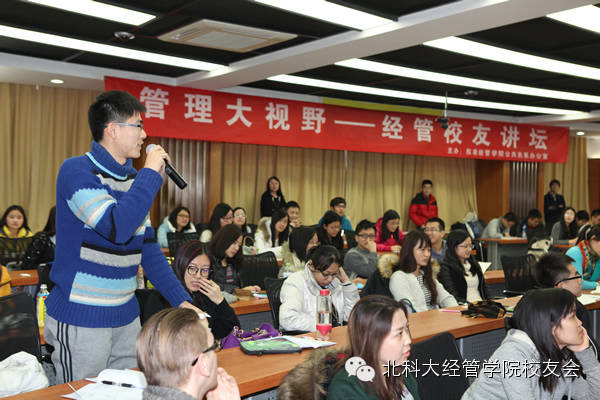 讲坛吸引了众多听众细心聆听,在现场交流环节大家纷纷提问,或为自身创业寻求专业指导,或对感兴趣的时事咨询探讨,现场气氛轻松活跃。在活动结束总结时,戴书记感谢韩复龄校友精彩的演讲和百忙中对校友工作的大力支持,希望大家都能关注学院校友活动,将未来的各项校友活动越做越好。