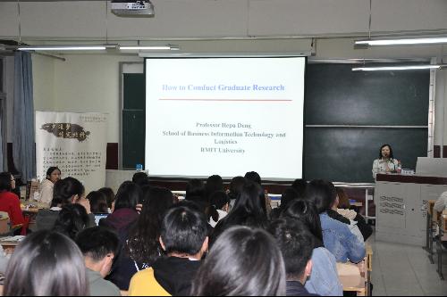 2018年10月10日,“管理大视野——经管校友讲坛”第二十四讲在管庄校区教学楼401举办,这也是“管理大视野”活动首次落足管庄校区。本期讲座主题为:How to Conduct Graduate Research(研究生阶段应当如何做研究)。主讲嘉宾为我院邓和浦校友。邓和浦教授现于澳大利亚墨尔本皇家理工大学的商业信息技术与物流学院任职。主要研究领域包括决策分析、数字商务、知识管理、电子政府在商务领域中的应用,已在国际顶尖学术期刊或国际会议上发表研究200余篇。邓和浦教授在跨文化环境中的高等教育工作和教学方面经验丰富,毕业后曾任高中数学教师,后进入武汉科技大学商学院任讲师。1998年7月进入莫纳什大学计算机和信息技术学院担任讲师,2000年入职澳大利亚墨尔本皇家理工大学。