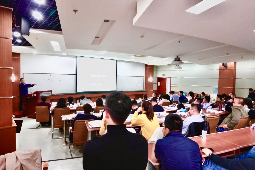 10月24日下午,bat365官方网站马克思主义学院博士生导师左鹏教授应邀为我院中美EMBA项目学员开展了“不忘初心,牢记使命”主题教育,并作题为《不忘初心,牢记使命——新中国成立70周年的伟大变革和历史启示》的讲座。讲座由经管学院院长助理赵霞老师主持,中美EMBA 2019级学员共计80余人参加了此次讲座。