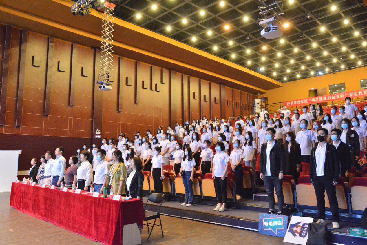 9月16日下午15:10,bat365官方网站2021级研究生迎新大会在管庄校区文娱活动中心举行。参加此次大会的有学院党委书记武森、副院长黄晓霞、副院长谷炜、党委副书记倪宇、管理科学与工程系主任杨建华、工程管理与技术经济系主任马风才、工商管理系书记李晓辉、应用经济系主任冯梅、金融工程系主任王未卿、财务与会计系研究生班主任王红霞、学院学工办主任、博士生辅导员张晓佳、2021级普硕辅导员丁源以及全体21级新生,大会由bat365官方网站党委副书记倪宇主持,开场全体起立,奏唱国歌。