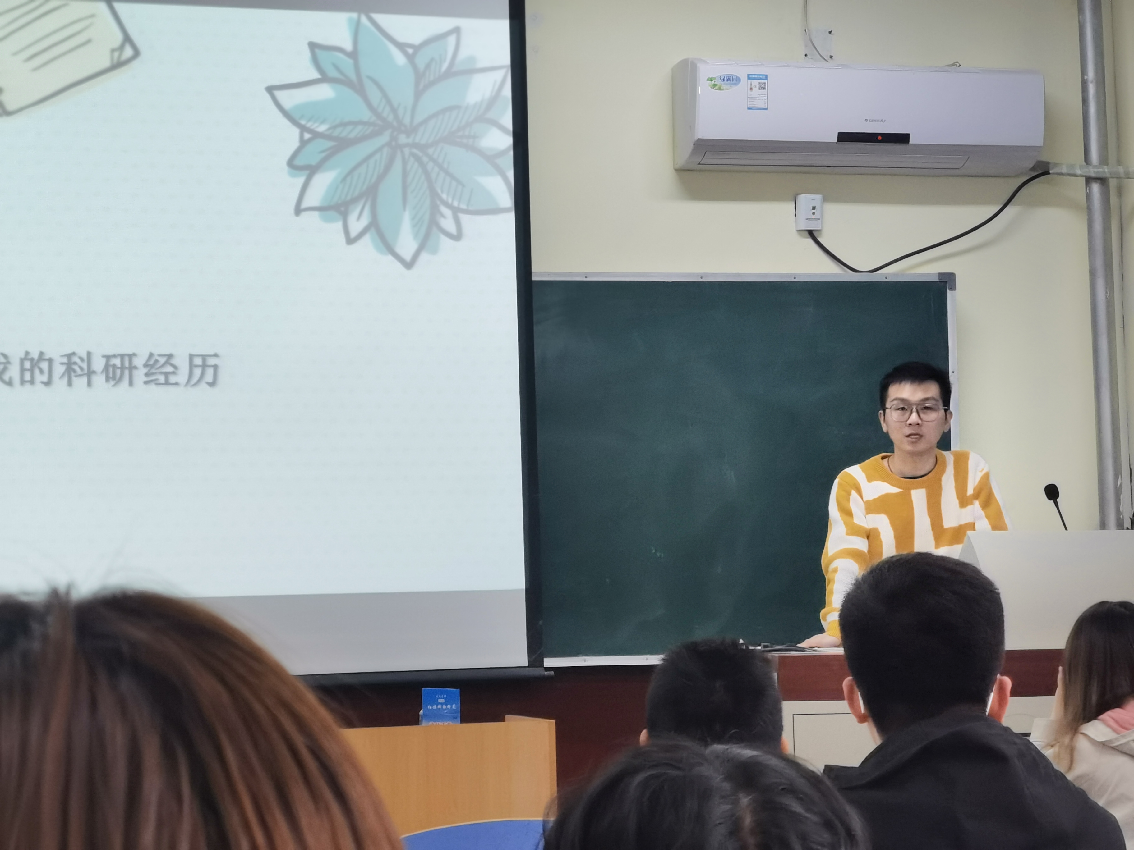 其次,楚中柱学长分享了自己的学校生活和科研经历,一方面他希望同学们的研究生科研学业充满诗书浩然气,另一方面也希望同学们在学习之余乐于生活的烟火气。并且在科研方面重点分析了论文的写作和投稿,根据自己的经验告诫同学们投稿过程中要审准审稿周期和期刊门类;在生活方面重点讲述了他是如何扩展自己的“圈子”,十分值得借鉴和学习。