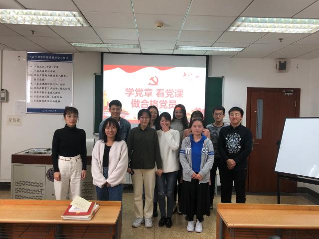 首先,刘铮给大家上了新学期第一次党课,以“学党章 看党课 做合格党员”为主题,通过对新时代中国特色社会主义思想、党章概述、党章的发展历程、十九大对党章的修改的总结,让大家更加了解党章的重要性和其时代性。