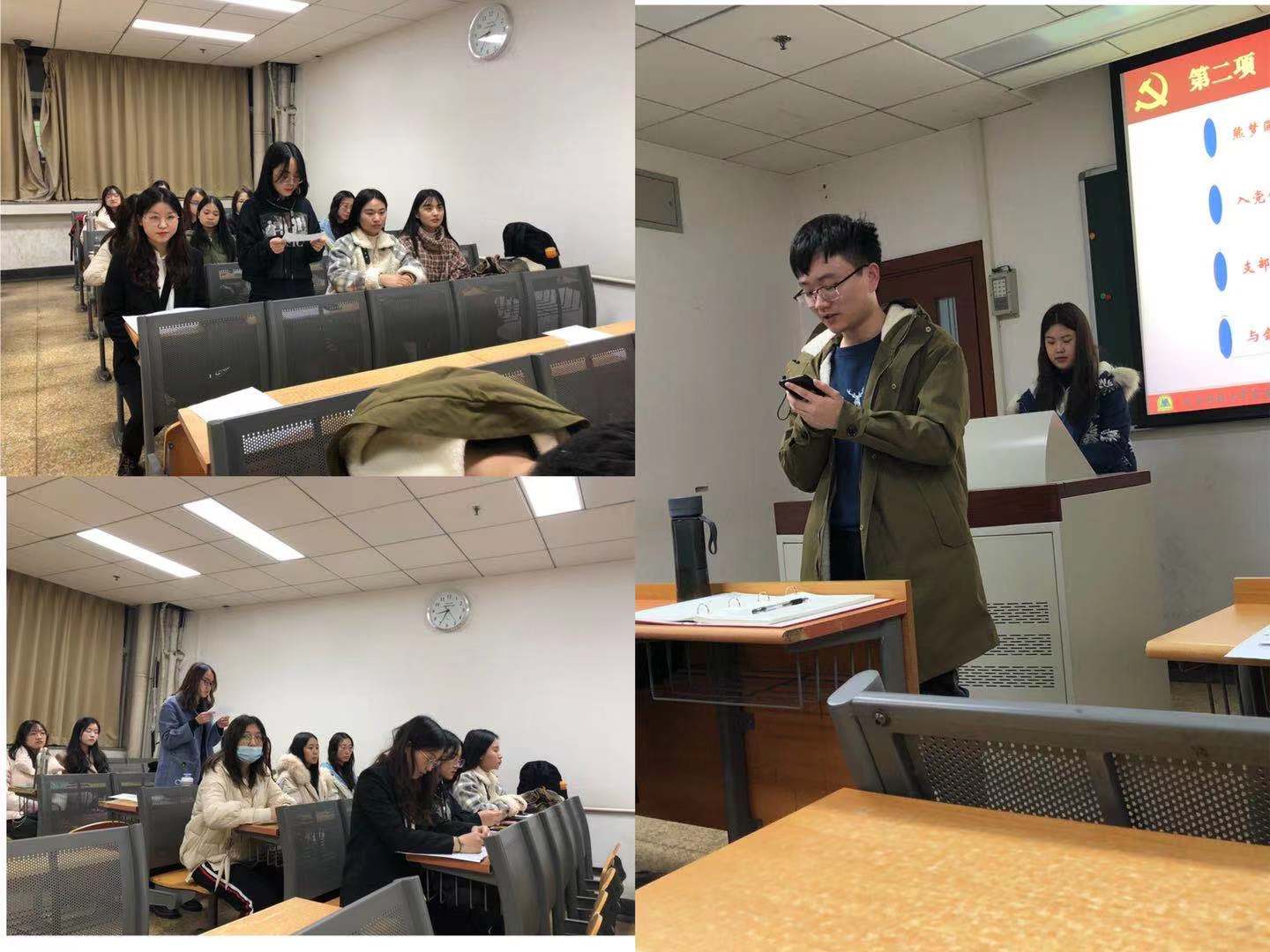11月30日晚,会计研党支部在经管楼504召开了党员发展大会和十一月组织生活,学院党委秘书曾凌燕、研究生辅导员丁源、支部全体党员和积极分子参加会议,大会由支部书记童梦露主持。大会主要讨论接收熊梦圆同志为预备党员问题以及分享五中全会学习感悟。