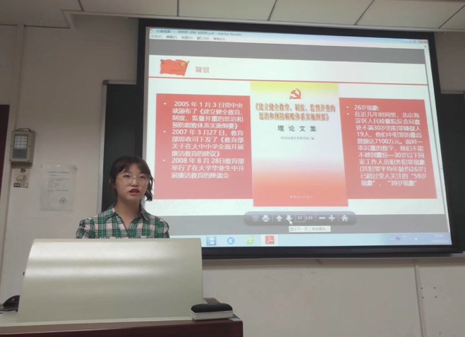 本次党员讲党课的主题为“反腐倡廉”,3位预备党员根从腐败的现状、反腐理论、反复特点以及大学生与反腐倡廉的关系等几个方面开展了本次党课,以一组触目惊心的数据唤起党员们对反腐工作的重视。对大学生来说,反腐倡廉有利于大学生自我发展,有利于国家培育人才,有利于构建和谐社会。