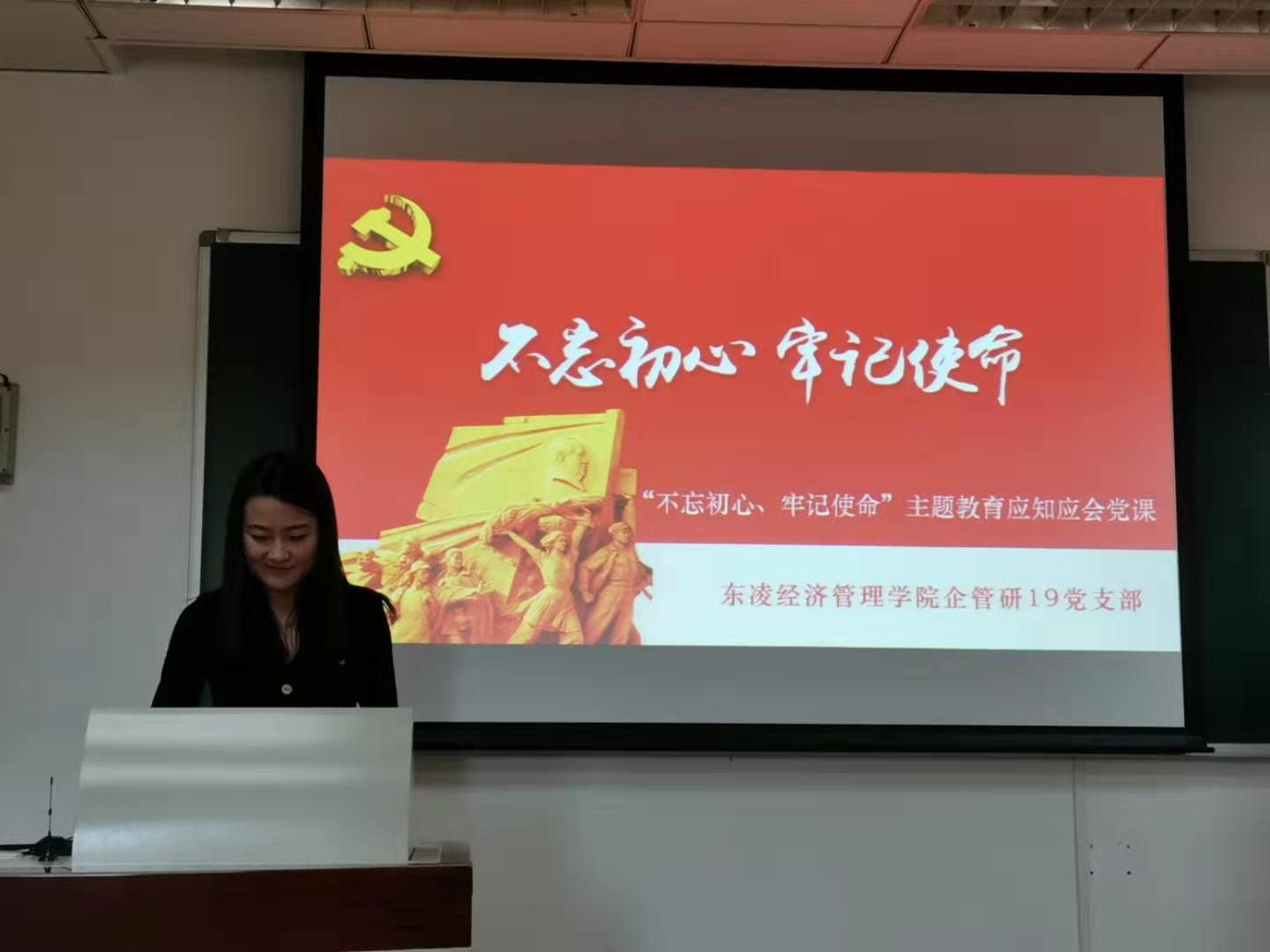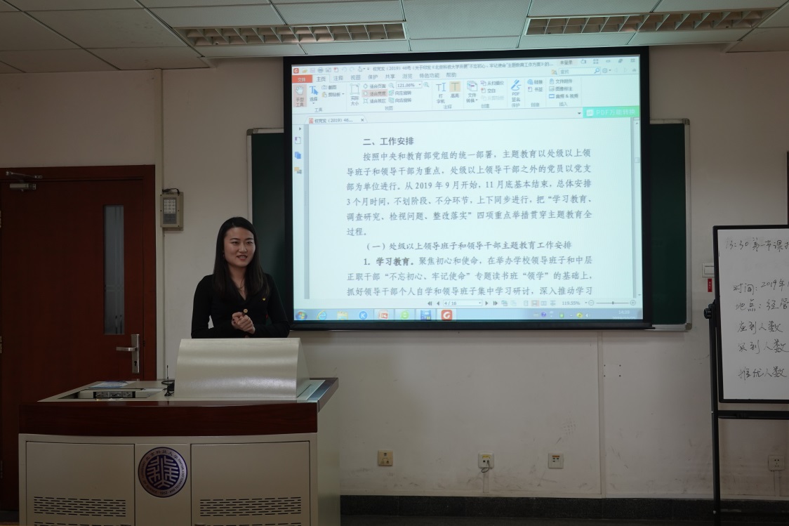 为响应在全党开展“不忘初心、牢记使命”主题教育的号召,根据“不忘初心、牢记使命”主题教育工作方案,10月25日下午,东凌bat365官方网站企管研19党支部于管楼504开展“不忘初心、牢记使命”主题教育应知应会党课,并邀请2019级研究生辅导员李响为全体支部成员进行讲解。
