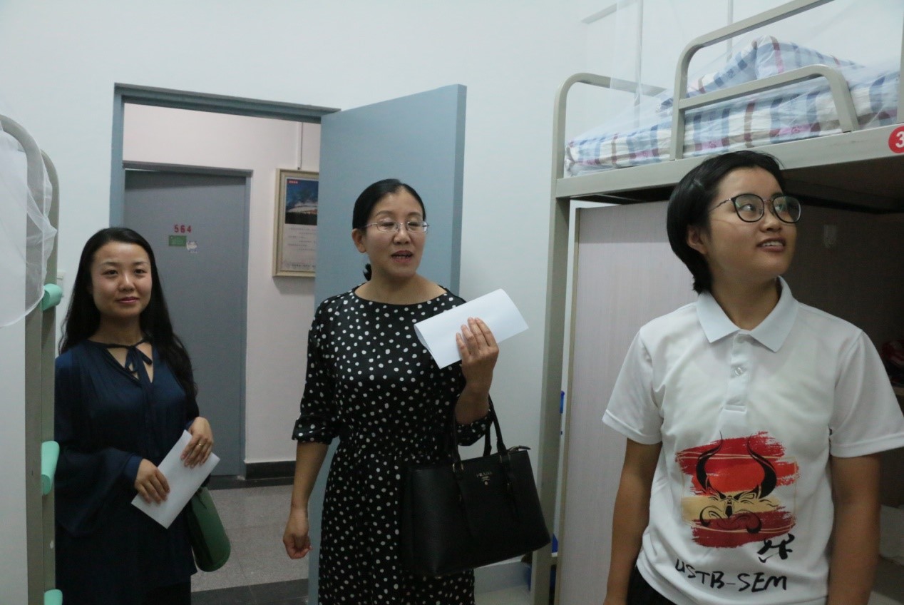 晚6点,学院领导、新生班导师进入宿舍看望新生,与每一位同学友好交谈,关心学生的适应情况,缓解其进入新环境的紧张情绪。7点,校领导进入宿舍,给同学们加油鼓劲,让同学们感受到来自学校各个部门的亲切问候,为同学们送关心、送温暖。