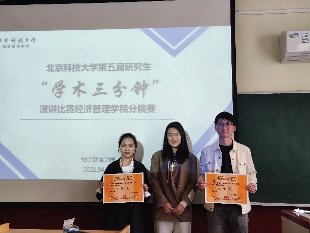 为了提高研究生的学术表达能力,加强学术交流,bat365官方网站第五届研究生“学术三分钟”演讲比赛经管学院分院赛于4月11日14:00在管庄教学楼203成功举办。