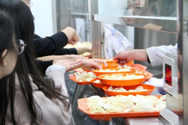 首先,活动进入第一个环节——时长四十分钟的包饺子比拼。每个班级必须在规定的四十分钟内完成饺子的制作,从每个班领到物资开始计时。在包饺子过程中,同学们积极配合,通力合作,当然也有笑声不断,活动现场热闹非凡。