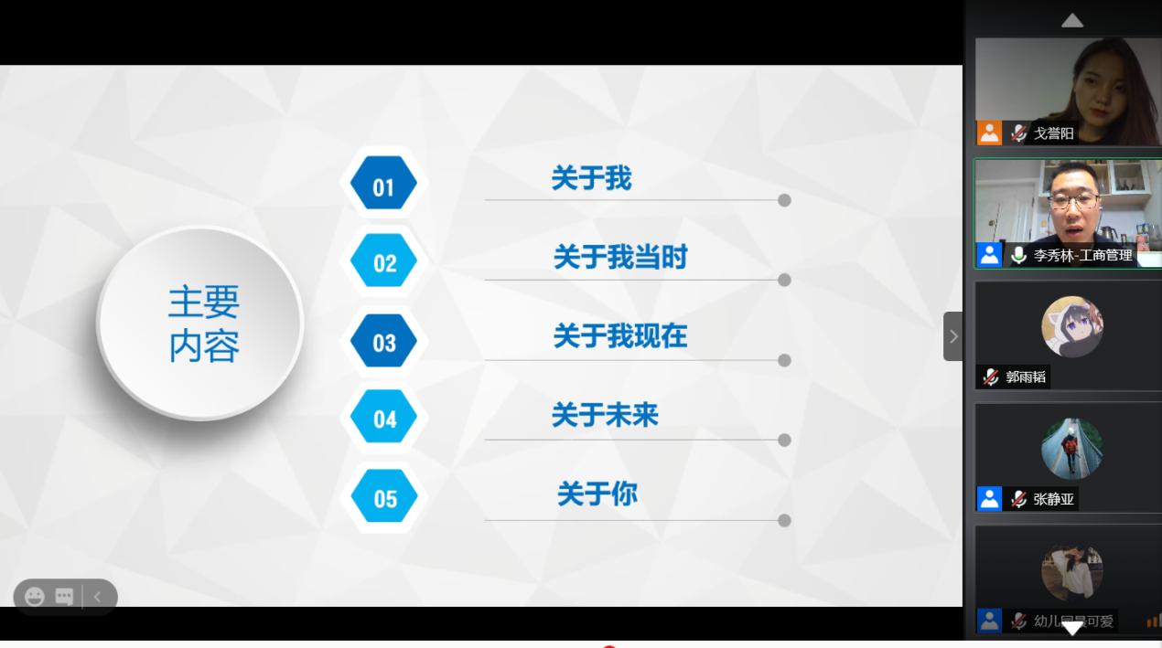 8月24日晚,经管学院本科19级工商管理类“校友话专业”——专业介绍会在线上召开,本次会议邀请优秀校友顾理琪、郑紫夫、张静亚和李秀林,为将要面临分专业的同学们讲解各自所学专业,提供一些选择专业的经验。会议由辅导员戈誉阳主持。