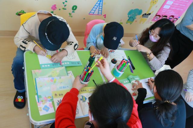 绘画小游戏。小朋友和志愿者一起完成绘画作品,志愿者耐心和小朋友沟通,引导孩子们绘画,心灵手巧的小朋友们也发挥想象力,用画笔在纸上描绘出他们的故事,富有童趣,充满活力。