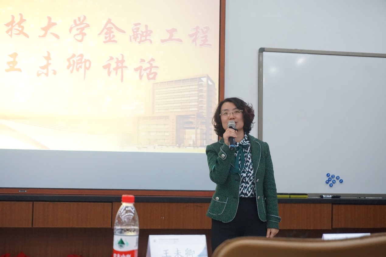 最后,王未卿老师发言,她对本次比赛师生的积极参与表示衷心感谢,对同学们取得的优异成绩表示祝贺。同时,她对整个比赛进行了回顾,并提出了对同学们将理论联系实际,点亮经济技能,收获知识与成长的殷切期望。希望同学们通过本次炒股大赛,都能有所收获,有所感悟。