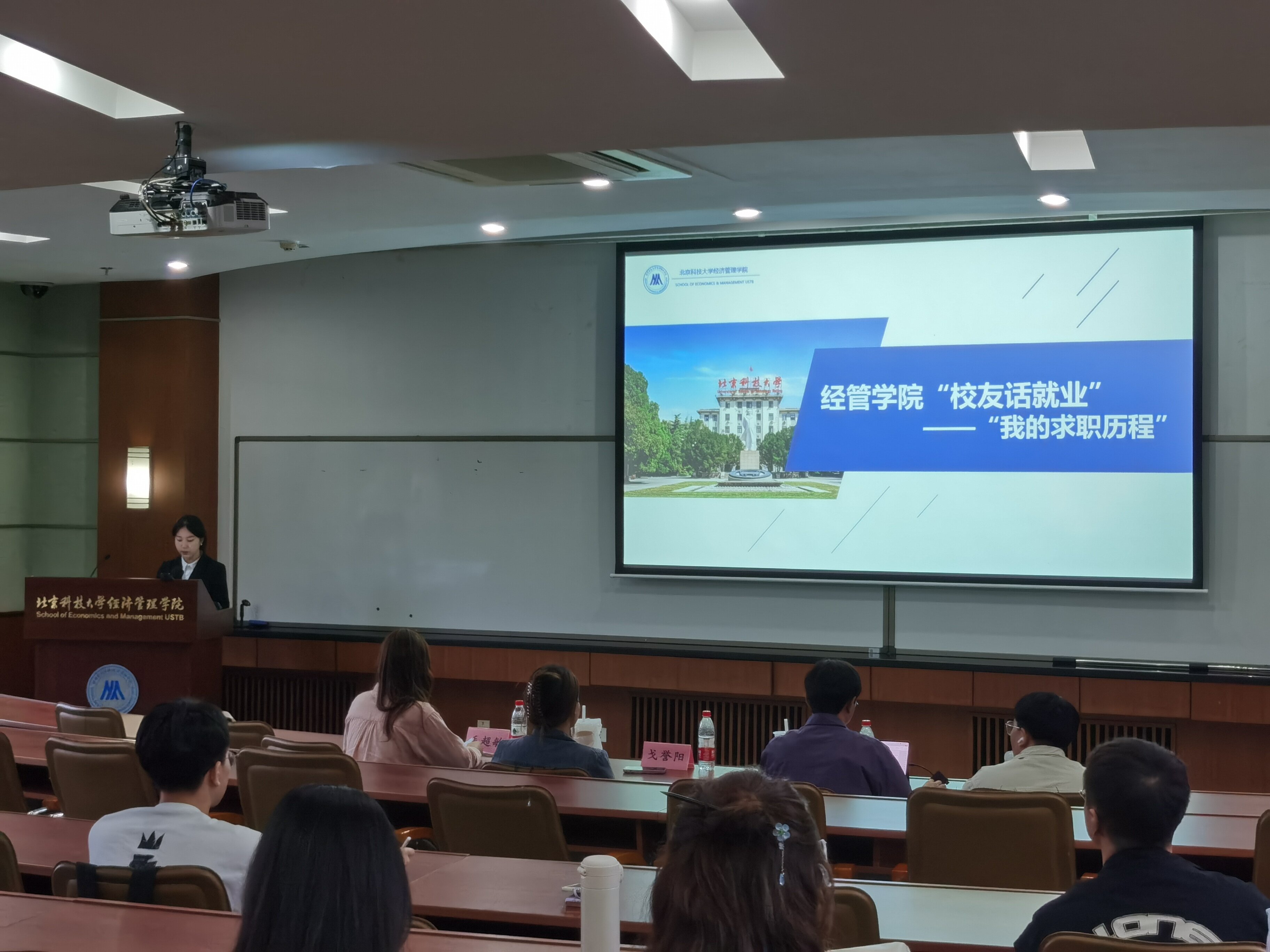 出席本次活动的嘉宾有学院就业指导教师戈誉阳;23届金融工程本科毕业生毛超敏,现任德勤华永会计师事务所(特殊普通合伙)北京分所风险咨询部分析员;23 届金融工程本科毕业生丁桂林,现任业之峰装饰集团旗下北京全包圆家居装饰有限公司总经理助理兼运营效率中心负责人,曾任业之峰装饰集团旗下北京全包圆家居装饰有限公司董事长秘书。
