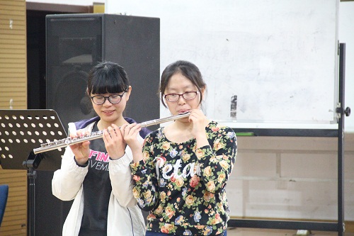 音乐鉴赏以“笛”为主题拉开了序幕,讲师首先为大家讲解了长笛、短笛以及低音长笛的相关知识,对“笛子家族”的部分、品牌、材质、指法、音域及音符作了详细的介绍。并现场指导同学吹奏长笛的正确姿势。在长笛理论教育结束后,讲师又带领大家欣赏长笛重奏作品,为同学们带来了心灵与音乐间的碰撞。