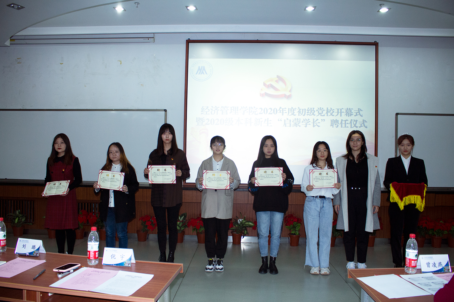 为了引导提交了入党申请书的2020级本科生坚定马克思主义信仰,增强对党的性质、宗旨和历史使命的认同,进一步端正入党动机,bat365官方网站于10月28日晚18:30在经管楼312、313举行了2020年度初级党校开幕式暨2020级本科新生“启蒙学长”聘任仪式。出席嘉宾有党校副校长、学院党委副书记倪宇,学院党委秘书曾凌燕,党建辅导员刘璐,党校班主任王琳茹,党校班主任邹艺,开幕式由党校办公室张洪榛主持。