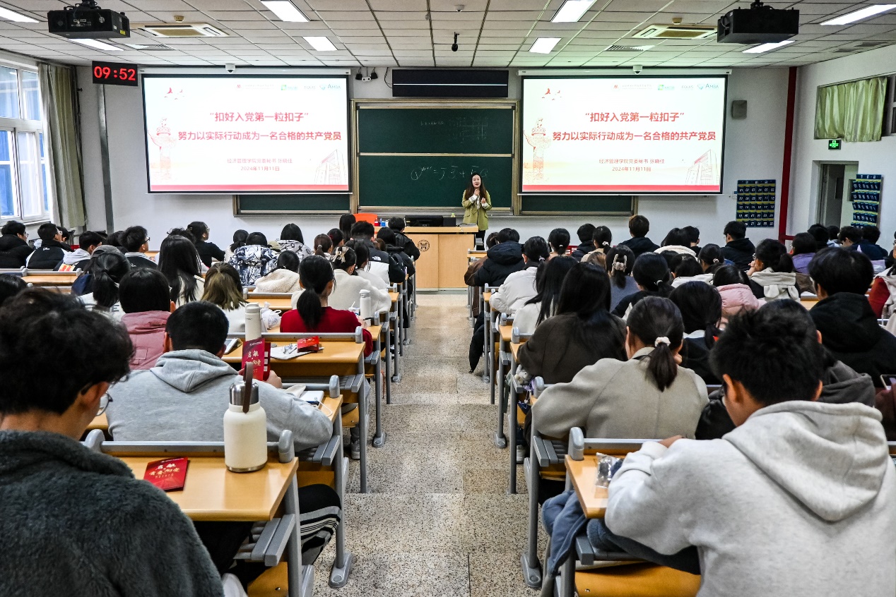 为深入学习贯彻习近平新时代中国特色社会主义思想,强化理想信念教育,引导青年学子积极向党组织靠拢,将党建育人工作落到实处,11月11日上午9:50,学院举办2024级本科新生入党启蒙教育第二讲,邀请学院党委秘书张晓佳于逸夫楼105为174名提交入党申请书的2024级本科新生开展“扣好入党第一粒扣子,努力以实际行动成为一名合格的共产党员”入党启蒙教育活动,让学生了解党的基本知识、掌握入党要求、熟知入党程序,实现入党“早启蒙”。