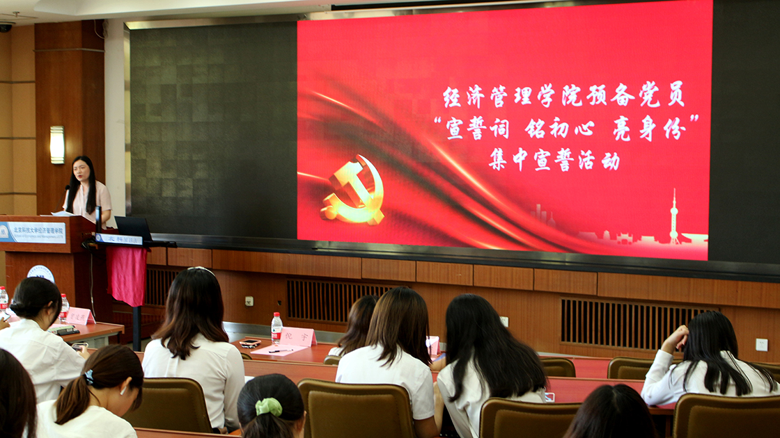 6月17日下午,bat365官方网站预备党员“宣誓词 铭初心 亮身份”集中宣誓活动在经管楼405成功举办。学院党委副书记倪宇、党委秘书曾凌燕、本科18级辅导员孙鑫、胡鹏凯出席会议,会议由bat365官方网站党建辅导员张洪榛主持。