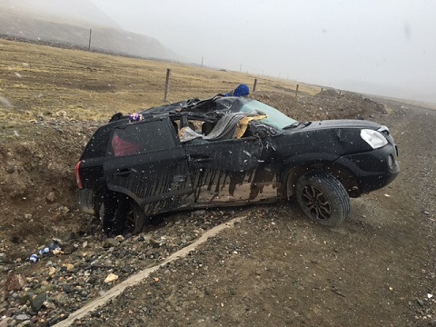 据了解,此次赛事的组委会安排参赛的49支高校队伍分别入住16家酒店,我们北科大代表队和北大光华、复旦大学同住在位于敦煌市中心的阳光沙州大酒店。20日上午,队员李懿和张华强、梁耀杰、张万强、梅华、秦毅分别从北京和甘肃嘉峪关赶来。在到达酒店时,从甘肃嘉峪关赶来的梁耀杰团队向大家讲述了一个感人至深的经历:在他们赶路的途中,车行进在海拔3千米左右的山区,突然他们在路旁的碎石沟中发现一辆受损严重的河南牌照的越野车,此时户外的气温很低,天空中还飘着零星的雪花,他们将车停在路边,走近受损车辆才发现车中的5个人不同程度地受伤,其中两名女乘客伤势严重。据了解,车中伤者共五人,其中有三名女游客,来此地观光,由于地势不熟,车速较快,车辆在碎石路上发生侧翻,滚到了沟中。他们在此地已等候过往的车辆救援已有5小时以上,此地手机和无线电都没有信号,车中的人员全部受伤,车损严重。在这样情况下,经历“戈赛”救援知识培训的张华强、梁耀杰、张万强、梅华、秦毅为了避免伤者二次受伤,没有移动他们,并当机立断,先从自己的车中拿了保暖物资和食物给伤者,以保证他们可以继续等待救援。然后,将一名伤势较轻的伤者,搀扶至自己车中,驱车近两小时才进入了手机有信号的区域,及时的拨打了110、120。当他们赶到驻地后接到了已经脱离危险的伤者的感谢电话,电话接通后,伤者泣不成声,连连呼喊“恩人、恩人……”。