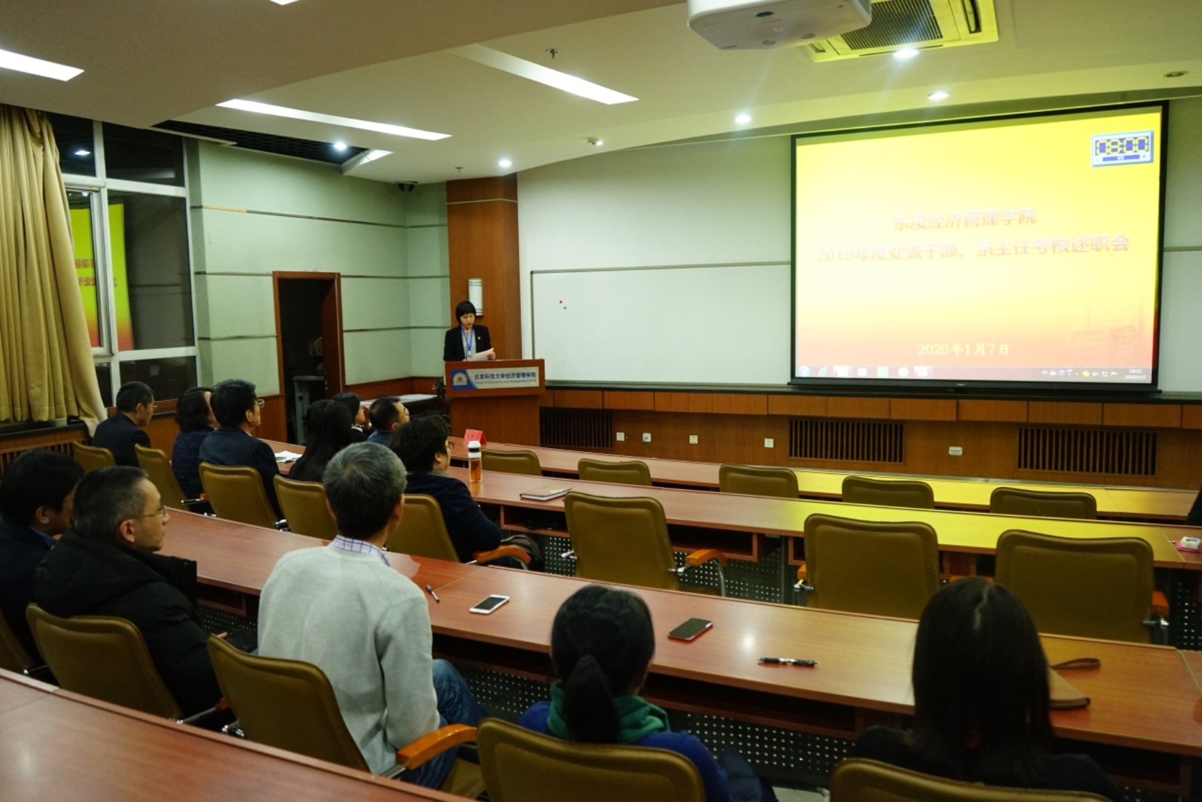 2020年1月7日在经管楼312,东凌经济管理学院2019年度处级干部、系主任考核述职测评会圆满落下帷幕。测评会于下午6点半正式开始,由副院长温雅主持。