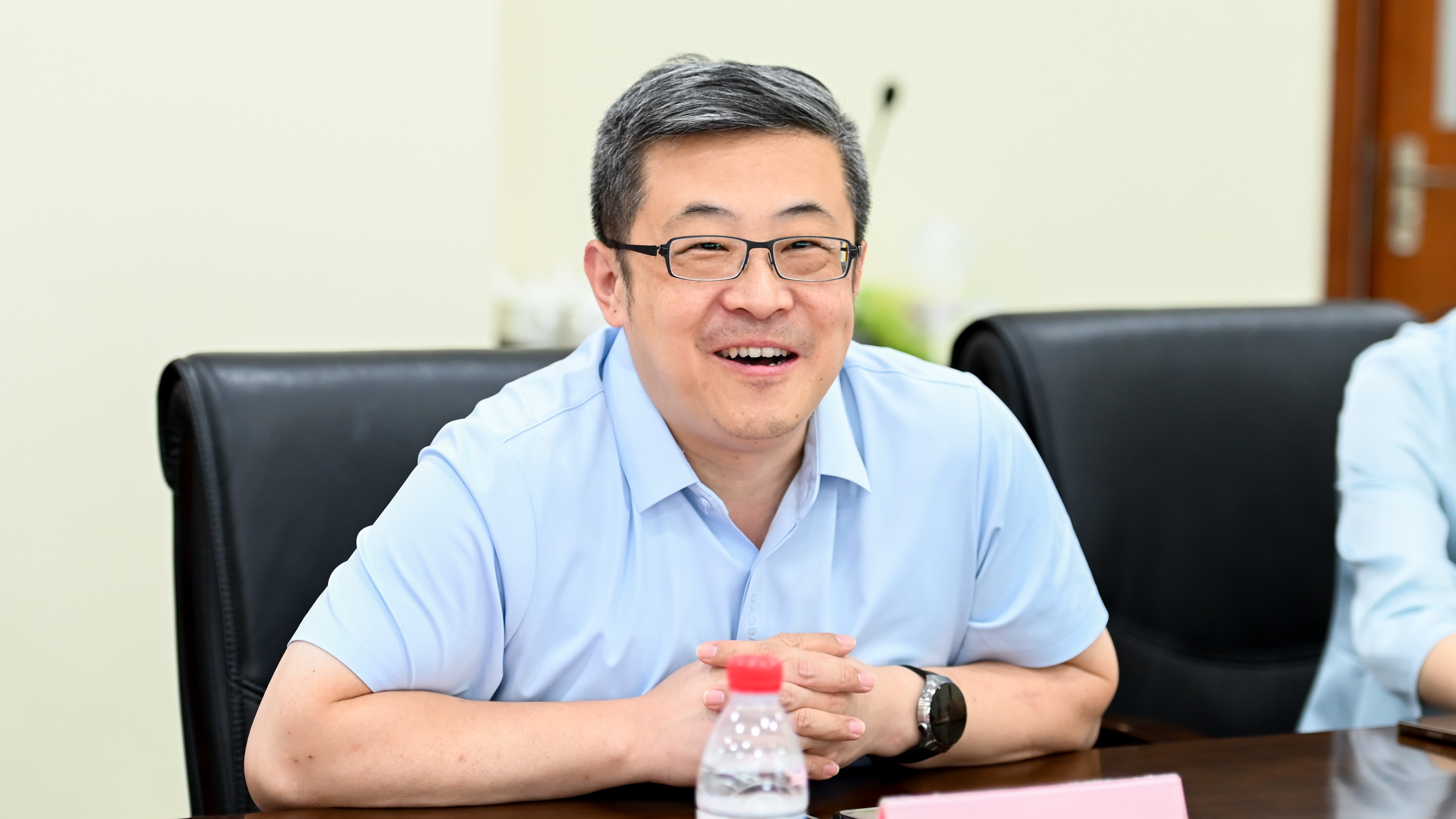 7月2日上午,北京电子控股有限责任公司副总经理陈勇利一行到访bat365官方网站,来访人员包括北京电子量检测装备有限责任公司党总支书记、董事长田永军,副总经理唐晓琦,副总经理周政奇等,双方围绕人才培养、科技创新等议题展开深度交流。bat365官方网站院长谷炜,科技成果转化研究院副院长杨志国,工商管理系教授魏钧,应用经济系教授冯梅等热情接待并参与座谈。座谈会由学院党委副书记、副院长刘焱主持。