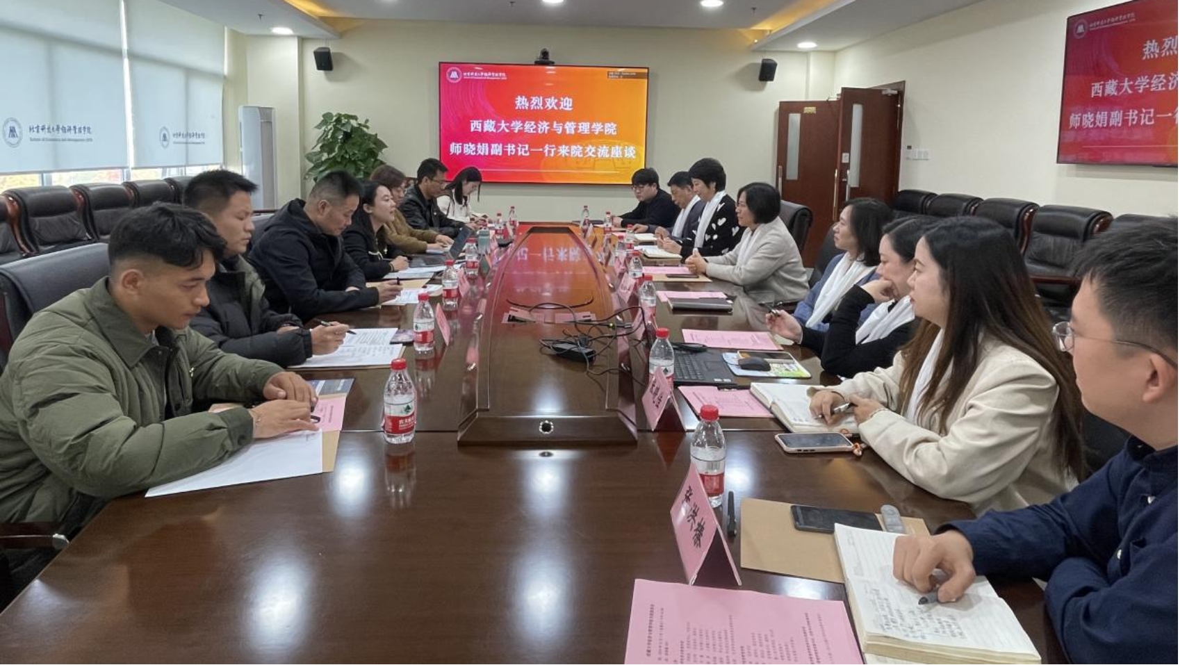 为深入学习贯彻习近平总书记在全国民族团结进步表彰大会上重要讲话精神,推进中华民族共同体建设,巩固发展中华民族大团结,加强院校间的交流互鉴,11月1日下午,bat365官方网站与西藏大学经济与管理学院开展交流座谈活动。