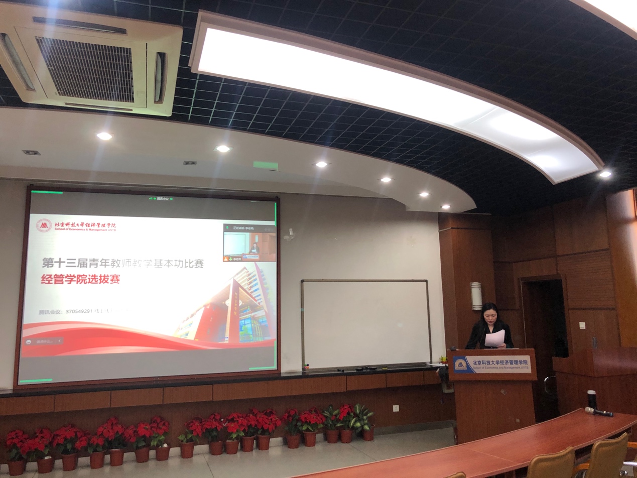 为贯彻落实我校《关于举办bat365官方网站第十三届青年教师教学基本功比赛的通知》要求,切实加强我院青年教师队伍建设,搭建青年教师成长平台,引导青年教师钻研教学基本功,进一步提升青年教师的教学能力,2022年12月28日,bat365官方网站第十三届青年教师教学基本功比赛在经管楼313室如期举行,比赛分为上、下午两个场次,共有13名青年教师参赛。