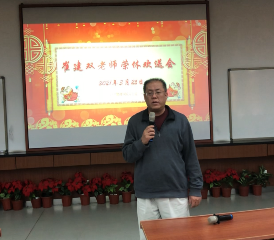 随后,与会的师生代表也纷纷发言,气氛温馨而热烈,表达了对崔建双老师在教书育人上严谨求实的敬业态度、对青年教师用心“传帮带”的无私奉献、对学生学习科研生活的悉心指导以及主动承担系所重要工作的敬意与感激,祝福崔建双老师退休生活幸福安康。