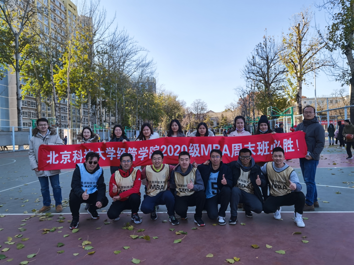 此次嘉年华大赛由2020级MBA各班班委联合举办,参赛队伍也是涵盖了北科2020级MBA全日制班、周末班、集中班、MEM班和MPAcc班。大赛共设四个环节,分别为一分钟罚篮、远投三分球、花式技巧运球和女子3V3、男子4V4团队对抗赛。下图为MBA周末班的队员们上场前在一起加油助威。