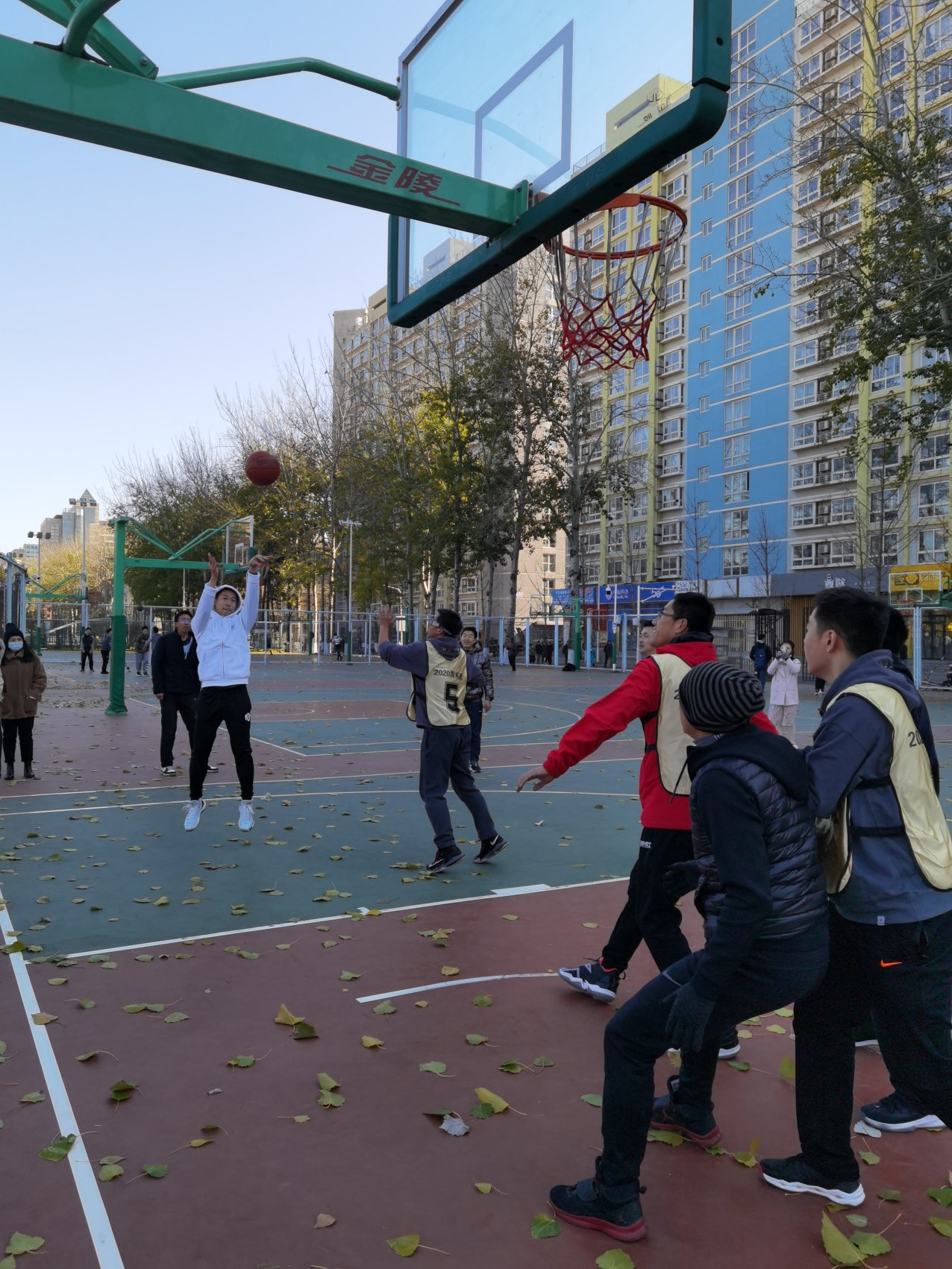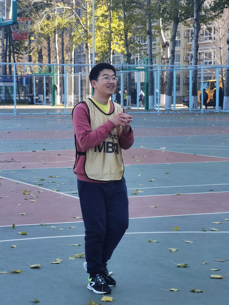 莫怪虹无影,如今小雪时。2020年11月22日,恰逢小雪节气,伴随着6、7级的阵风,室外温度也降到了只有3摄氏度,但这并没有阻挡住参加北科大2020MBA篮球嘉年华大赛的同学们。中午11点半,同学们下课后准时来到比赛场地。看,队员们已经开始热身了。