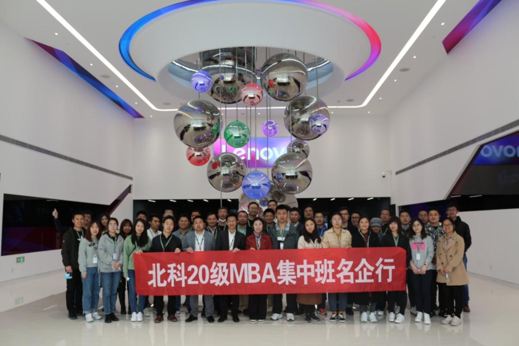 2021年4月16日上午,在工商管理系姚卿老师和尹奎老师的带领下,2020级MBA集中班四十余名同学对联想未来中心进行参访。