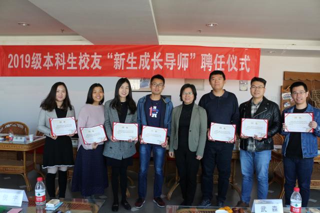 东凌bat365官方网站2019级本科生校友“新生成长导师”聘任仪式于10月26日上午9点30在学院1205室举行。学院党委书记武森,党委副书记倪宇,公共关系办公室主任秦艺芳,2019级新生辅导员戈誉阳、张洪榛,及7位校友出席了活动。