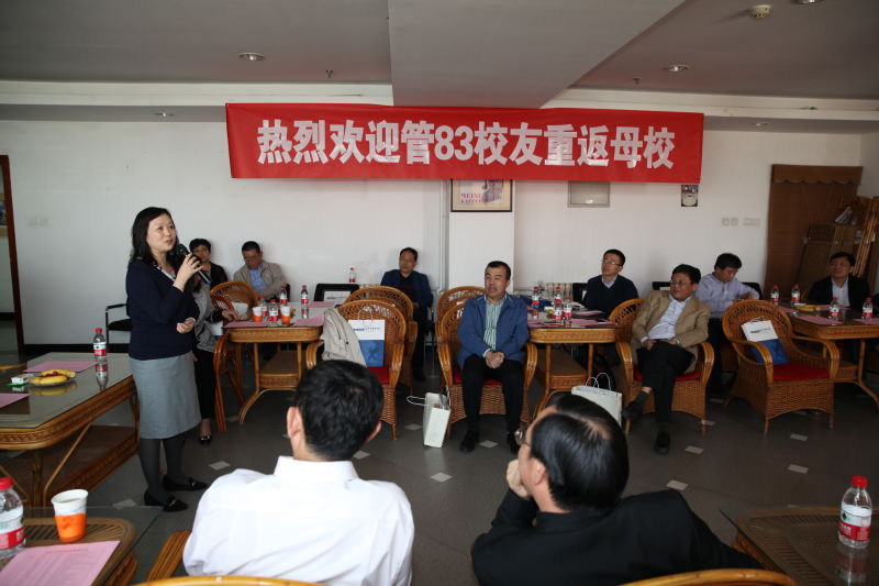 4月22日下午,管83级17名校友与学院领导和老师的见面会在经管楼1205室举行。学校副校长何民庆,学院党委书记戴淑芬、学院本科生教学副院长范小华和学院党委副书记温雅,与管83级校友们共聚一堂。见面会由校友代表张亚林主持,学校副校长何民庆首先致辞,欢迎校友返校,并感谢校友们始终惦记着学校和学院,母校永远是大家温暖的家。学院党委书记戴淑芬介绍了学院近年来的发展,希望校友们能一直持续关注学院,欢迎常回来看看。