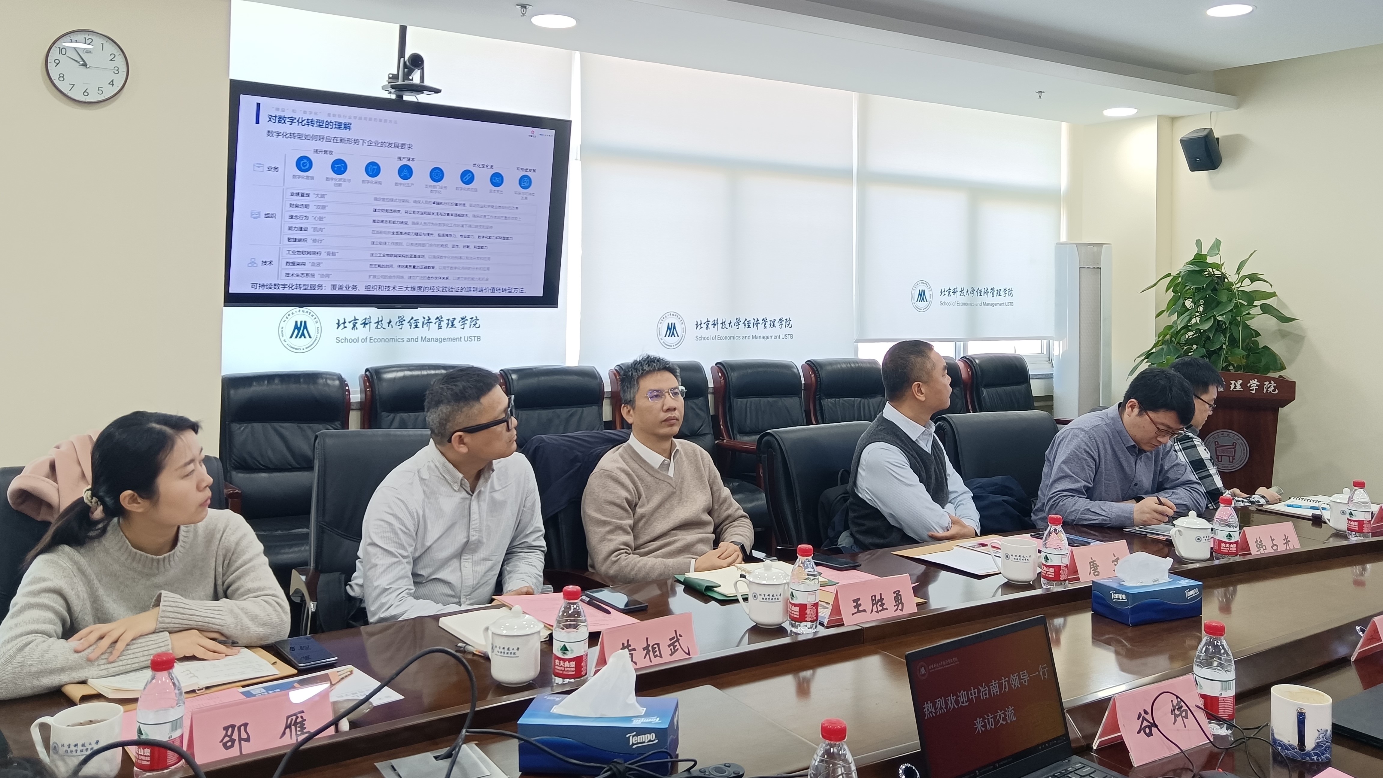 谷炜院长代表学院对中冶南方一行表示热烈欢迎,并详细介绍了学院在企业数字化转型、人工智能技术应用、高级管理人才培养等方面的最新成果,希望双方能够保持紧密地联系和沟通,共同推进校企合作深入发展,不断提升专业人才培养质量,实现产学研的有机融合。