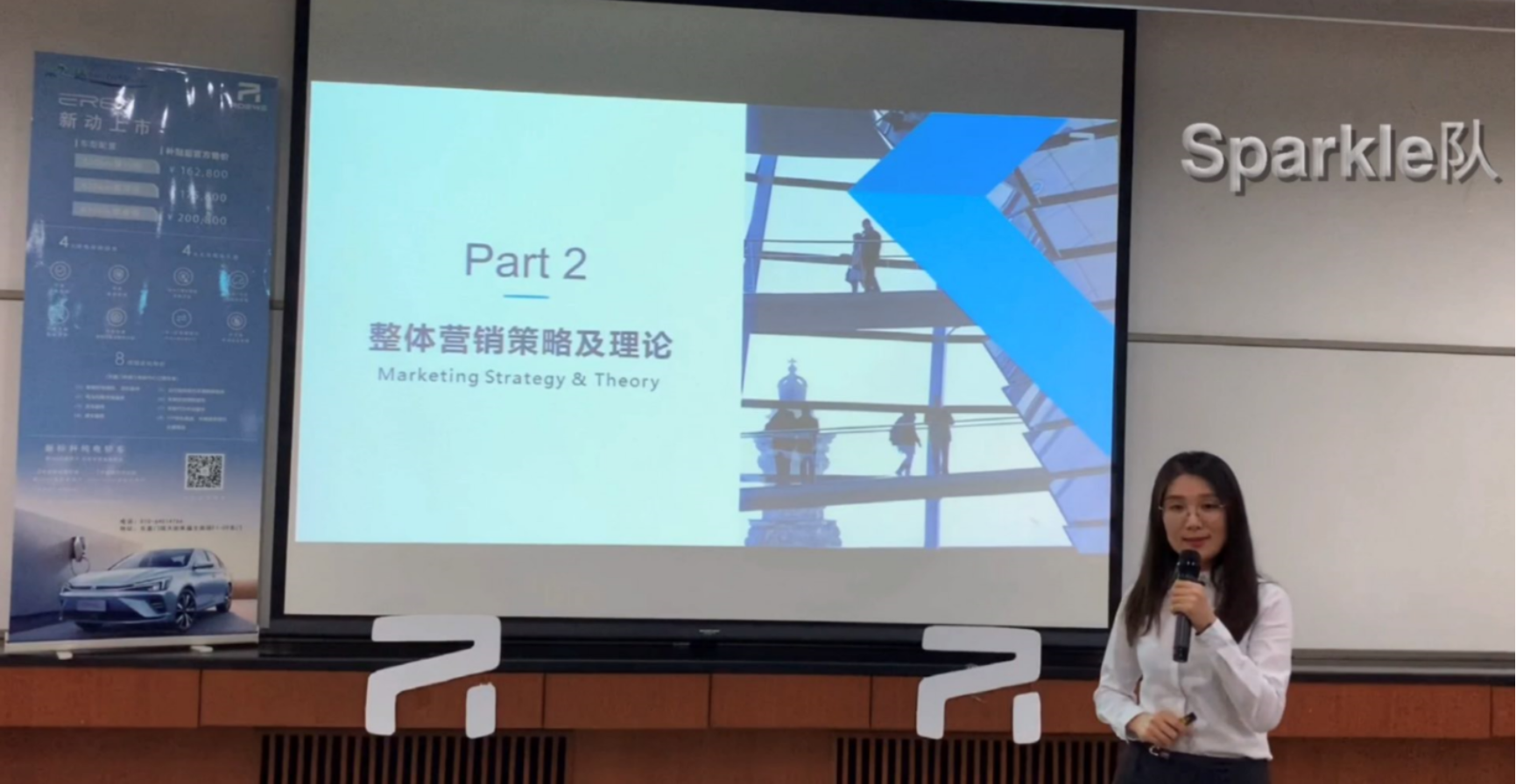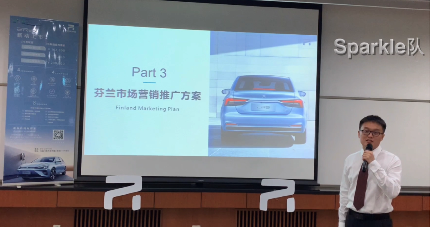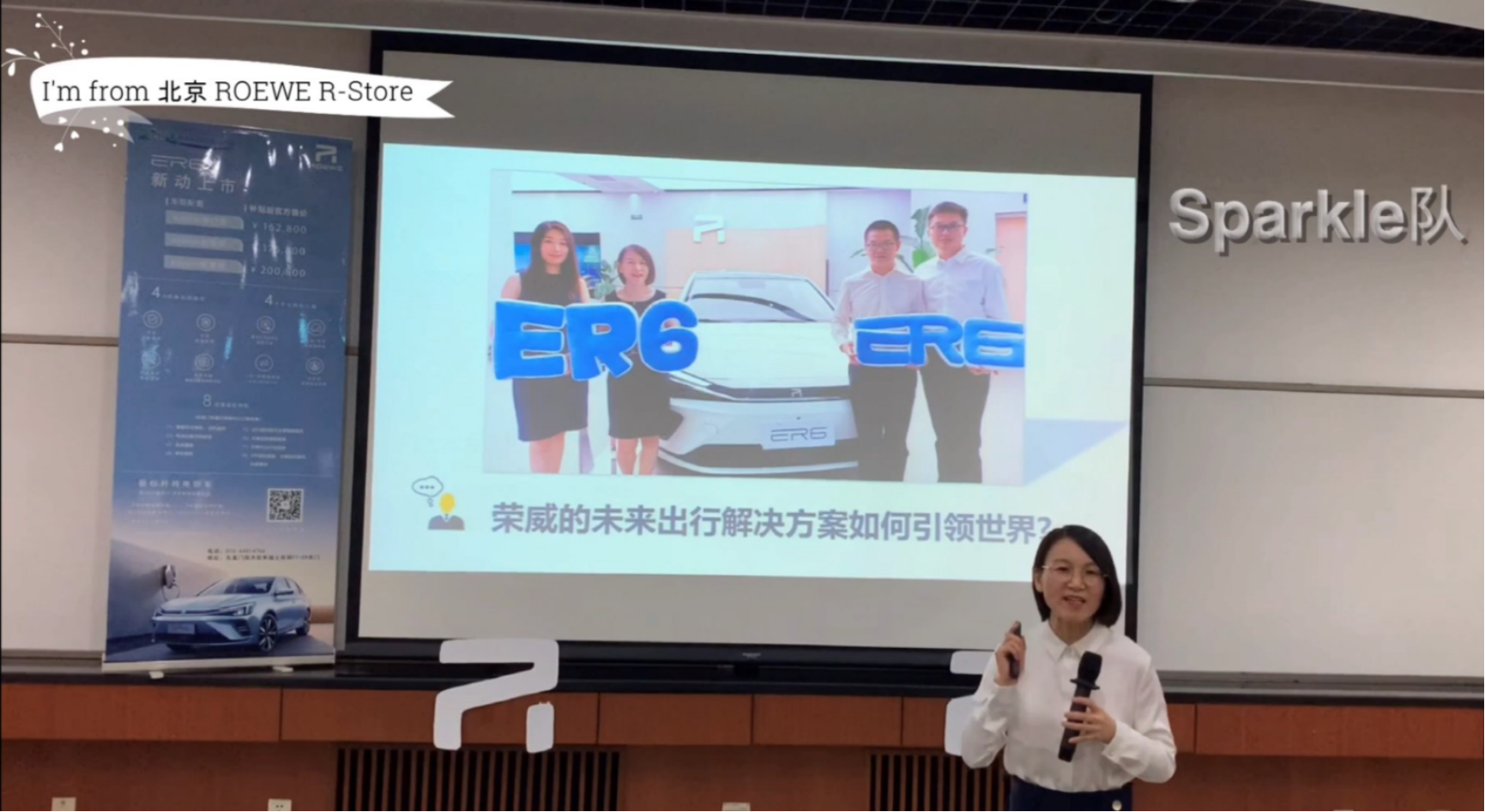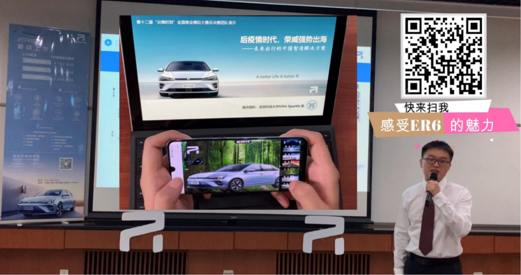 本届的商演案例是荣威ER6新标杆纯电轿车的“双循环”之路。我校的“Sparkle”团队在商演视频录制阶段知行结合,一方面通过网络查询资料并咨询相关行业的专业人士来积累信息数据,另一方面亲自前往北京的荣威R-Store的体验店实地考察,为后续的案例分析打下坚实的基础。