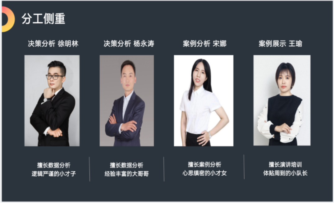 这是第三点,也是最重要的一点,经过几天的熬夜奋战,激发了每个团队成员的无限潜力,有细心周全、专业又机变的小鱼队长,有创意满满、负责有担当的娜娜桑,有智力卓绝、分析能力超强的涛哥,有精益求精、英语超棒的明侦探,还有原永动机队员审美在线的啊冰同学不厌其烦地为我们一遍遍修改海报,帅气满满的铭远同学熬着夜为我们修改商演视频,正如我们在商演环节最后喊出的口号一样:伟大的团队是让其每一个平凡的队员创造不平凡的业绩!