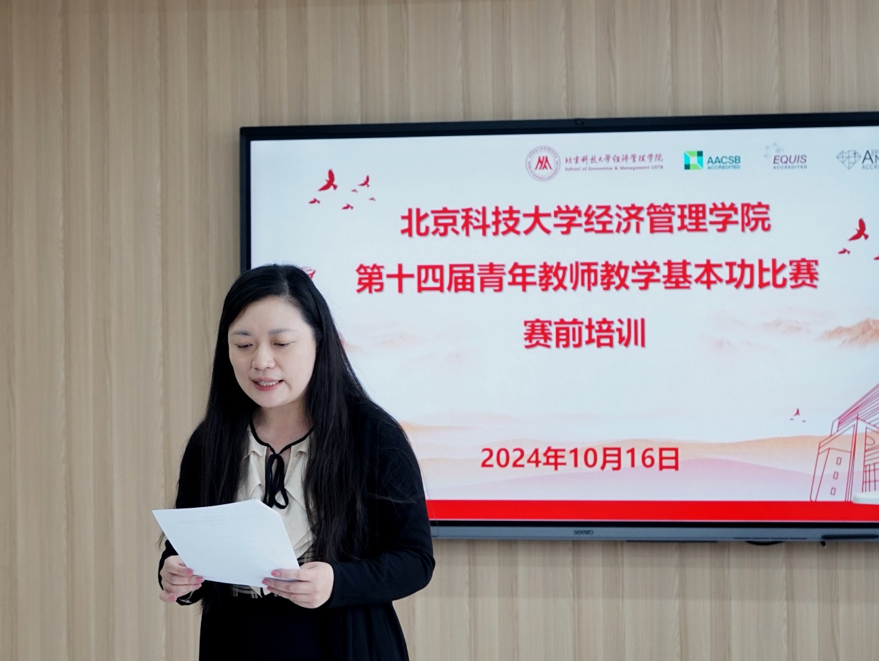 高昂老师作为2023年北京高校第十三届青年教师教学基本功比赛(文科类)A组一等奖、最佳现场展示奖和最受学生欢迎奖获得者。在培训过程中,从青年教师教学基本功比赛基本情况、教学提升、课堂设计、临赛经验等方面进行主题分享,并从自己参加市青教赛的备赛经验出发,通过实际案例分析了如何在教学过程中运用现代教学理念和技术手段,能够更好地提高教学效果,为与会青年教师们准备参加比赛提供了参考借鉴。