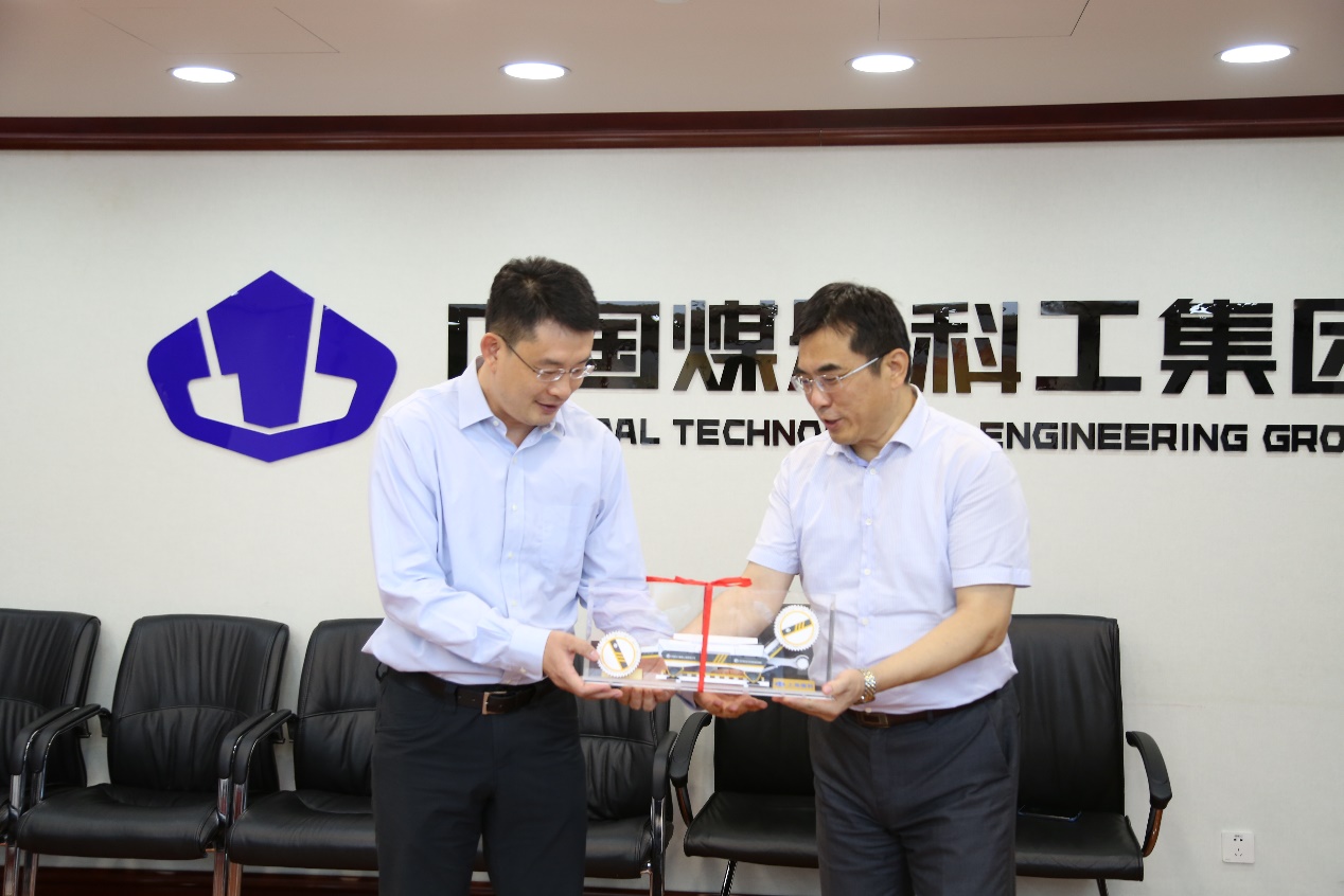 张林总经理向谷炜院长赠送先进的煤机产品模型