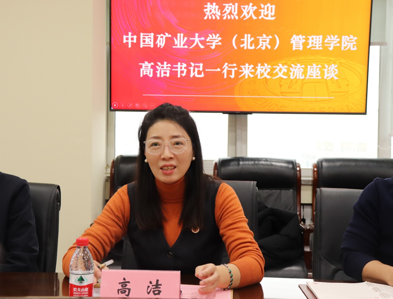 随后,高洁代表中国矿业大学(北京)管理学院对我院近年来取得的成绩表示热烈的祝贺,并介绍了中国矿业大学(北京)管理学院的发展历程与基本情况。