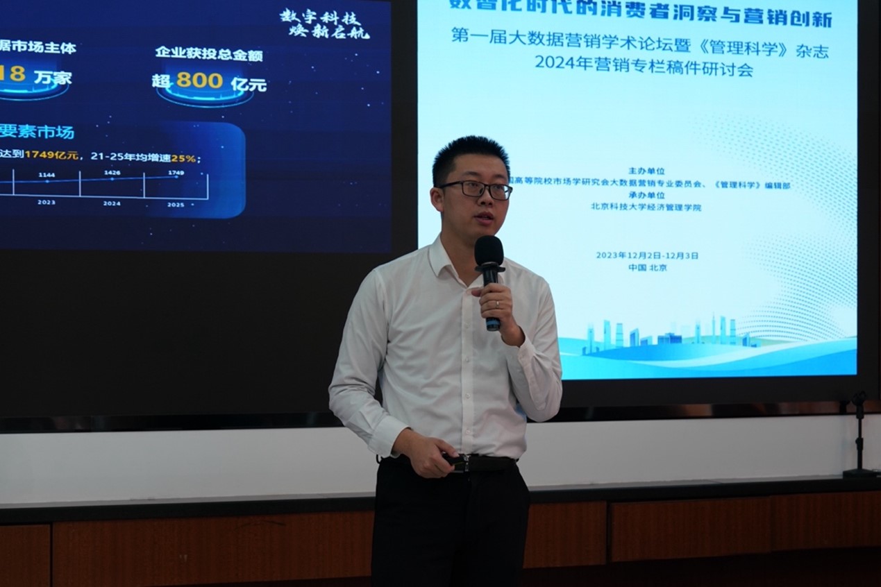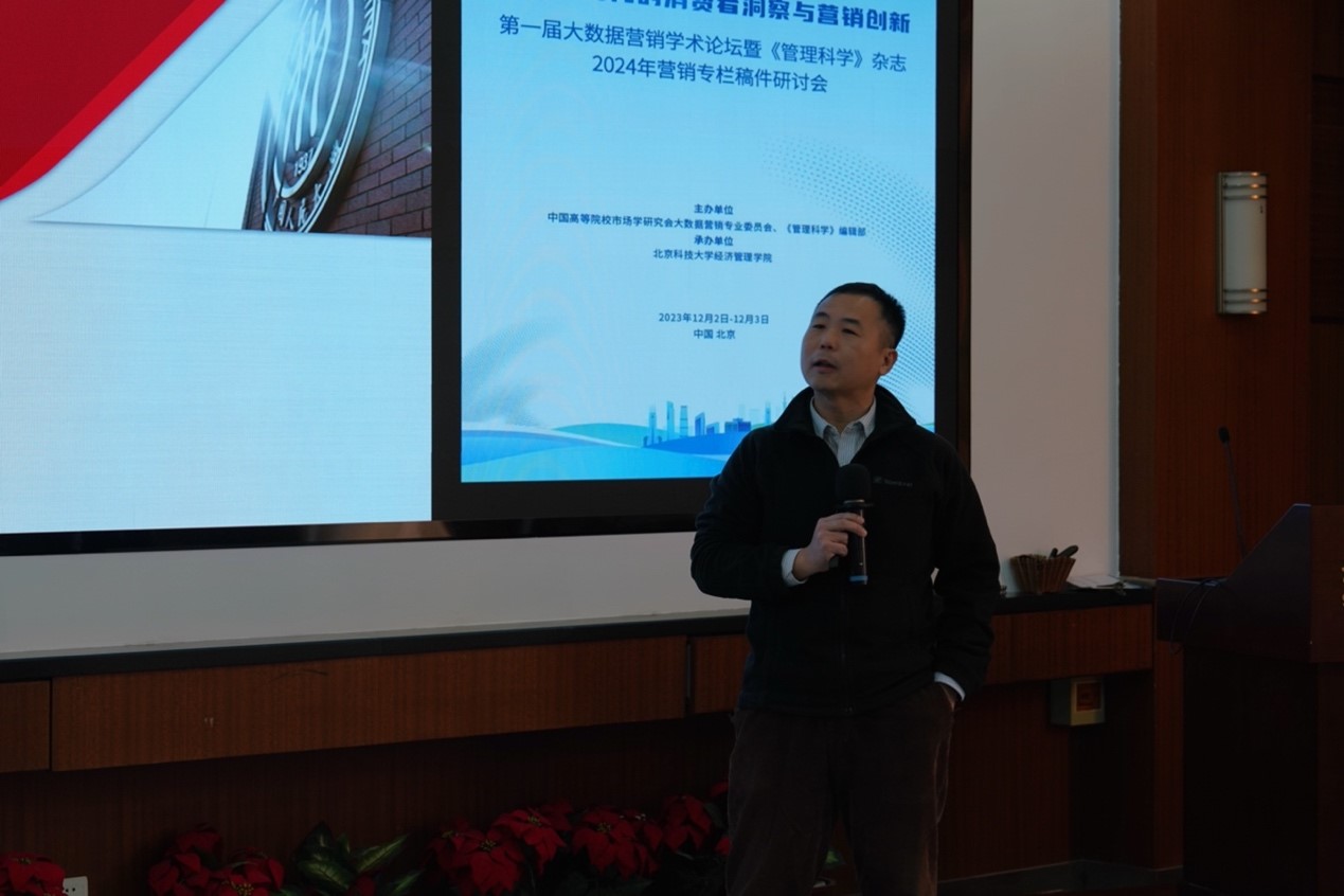 2023年12月2日-3日,第一届大数据营销学术论坛暨《管理科学》杂志2024年营销专栏稿件研讨会在我院召开。本届论坛由中国高等院校市场学研究会大数据营销专业委员会和《管理科学》编辑部联合主办,bat365官方网站承办。论坛以“数智化时代的消费者洞察与营销创新”为主题,旨在凝聚大数据营销领域的专家、业界人士和青年学者,共同推动数据驱动式营销创新的研究与实践进展,为从事大数据营销教学和研究的同仁提供合作交流的平台。论坛邀请多位国内知名学者和行业专家做主题报告,分享大数据营销领域最前沿的学术及业界成果,共有80余位来自国内40余所高校的专家、学者和学生参会交流。