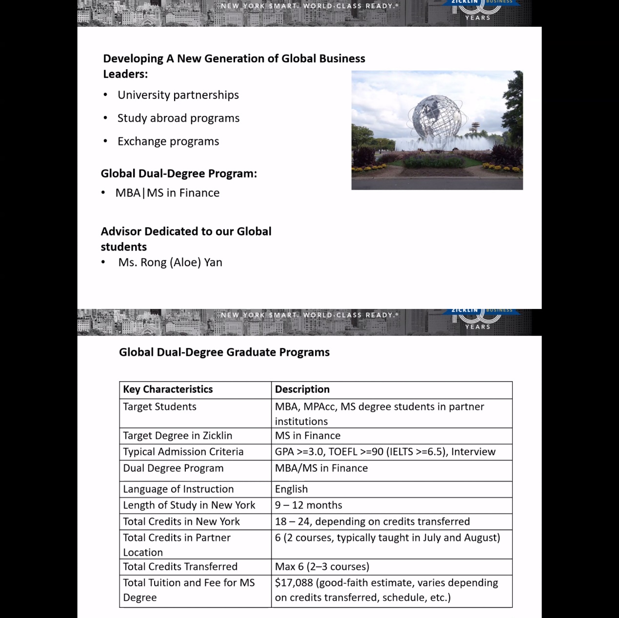 若需了解更多项目信息,请点击查阅:纽约市立大学巴鲁克分校兹克林商学院金融硕士双学位项目