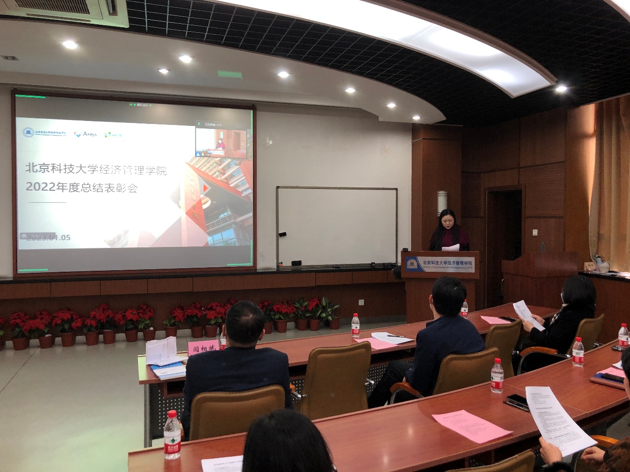 随后,范小华副院长宣读了《学院本科生教育教学方面表彰决定》,黄晓霞副院长宣读了《学院研究生培养和青年教师教学基本功比赛方面表彰决定》,谷炜院长宣读了《学院科研方面表彰决定》,杨志达副书记宣读了《学院学生工作及疫情防控方面表彰决定》,武森书记宣读了《学院行政管理及人事方面表彰决定》。倪宇副院长介绍了2022年度学院新入职教职工情况。新入职教职工在云端依次同全院教师见面交流,增近了彼此的了解,有助于新入职教职工更快融入到经管学院的大家庭。