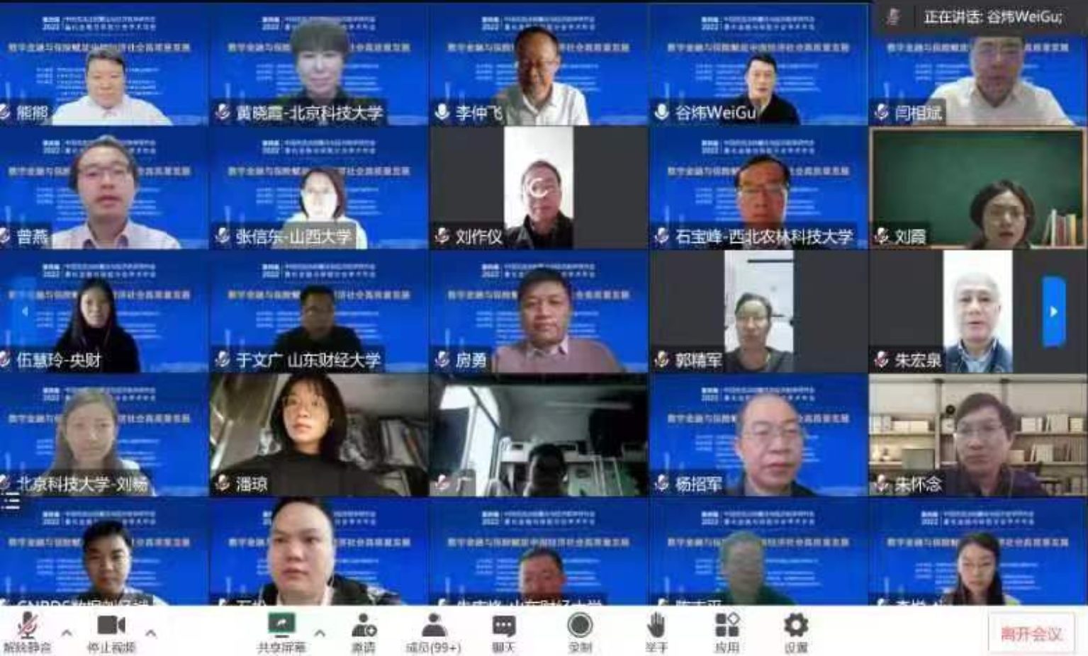 本届年会聚焦“数字金融与保险赋能中国经济社会高质量发展”,旨在深入交流数字金融、金融科技、金融创新、金融安全、大数据金融、互联网金融、金融安全、资产配置、行为金融、养老金融、保险精算等相关领域的重要热点问题。此次学术盛会吸引了来自中国科学院、哥伦比亚大学、约翰霍普金斯大学、佛罗里达大学、香港科技大学、清华大学、北京航空航天大学、bat365官方网站、天津大学、对外经济贸易大学、西南财经大学、中央财经大学、上海财经大学、中山大学、南方科技大学、厦门大学、华东师范大学、湖南大学、四川大学、西安交通大学等近70所高校专家和学者以及银河证券和CNRDS的业界专家近800人,通过腾讯会议和直播的方式参加会议,开展学术交流和讨论。